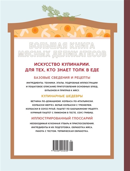 Книга французского эксперта в области мяса и субпродуктов Мари Каффарель содержит 100 рецептов мясных деликатесов и 30 базовых рецептов колбас, терринов, паштетов, кайетов и других изысканных блюд. Автор поделится секретами, как добиться отличных результатов в процессах вяленья, засолки, маринования мяса, приготовления колбасного фарша, набивки и формовки колбас, фламбирования, поширования и многого другого. Приготовьте разнообразные ароматные блюда в сопровождении гармоничных соусов и приправ и отправьтесь в гастрономическое путешествие!