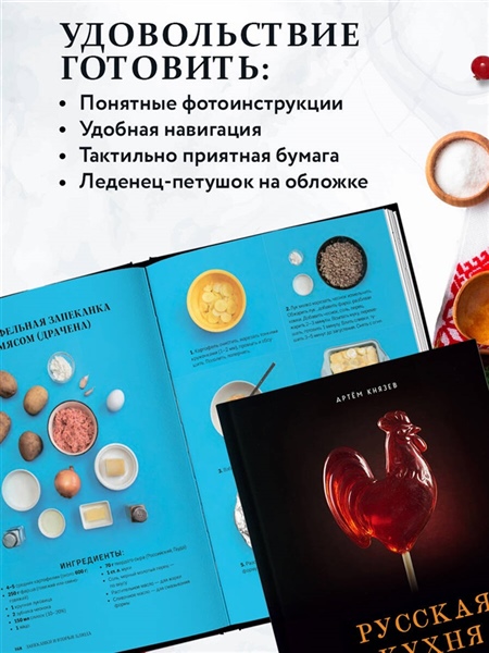 Эта книга — для тех, кто хочет прикоснуться к богатству русской кухни: от простых повседневных блюд до традиционных угощений, которыми издавна славился наш стол. Здесь собраны рецепты, позволяющие наслаждаться и быстрым приготовлением, и неторопливым кулинарным творчеством. Каждый рецепт сопровождается пошаговыми инструкциями и фотографиями, которые сделают готовку легкой и увлекательной. Для удобства книга дополнена подробным содержанием и алфавитным указателем, чтобы вы могли быстро находить нужные блюда и ингредиенты.