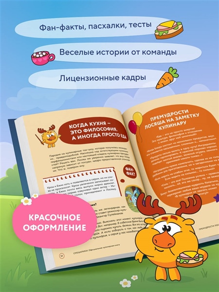 В этой книге вы найдете вкусные истории, фан-факты о любимых сериях, кулинарную философию Смешариков и море юмора, который точно украсит ваш ностальгический вечер.