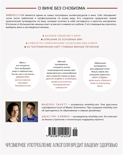 WINEFOLLY является одним из самых популярных ресурсов о вине, который объединяет сотни тысяч любителей и профессионалов по всему миру. Это живой практический путеводитель по вину, который сочетает в себе наглядность и простоту восприятия. В отличие от большинства «винных книг» в нем нет и намека на снобизм. С его помощью вы научитесь выбирать вино и наслаждаться жизнью.