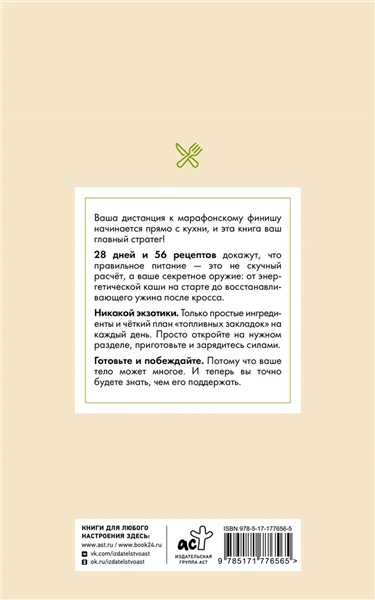 Готовитесь к марафону? Помните, что питание — такой же важный элемент подготовки, как и беговые тренировки. Эта книга — ваш стратегический план на 28 дней. Внутри — быстрые, вкусные и сбалансированные рецепты из доступных продуктов. Вы научитесь делать правильные "топливные закладки" для энергии на всей дистанции и тренировать ЖКТ. Превратите свою кухню в секретное оружие для достижения финишной ленты!