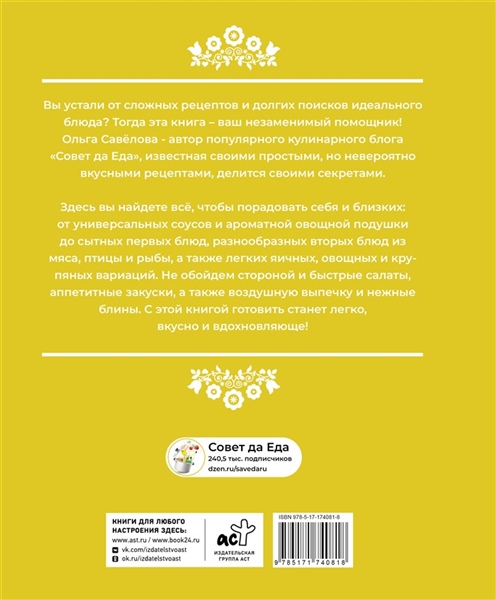 Вы устали от сложных рецептов и долгих поисков идеального блюда? Тогда эта книга – ваш незаменимый помощник! Ольга Савелова - автор популярного кулинарного блога "Совет да еда", известная своими простыми, но невероятно вкусными рецептами, делится своими секретами.