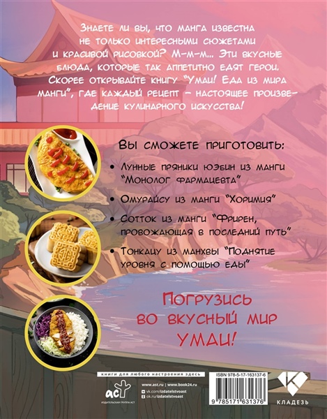 Эта книга идеально подойдет как для фанатов манги и манхвы, так и для кулинаров – вас ждут рецепты из японской и корейской кухни, описания сюжетов, а также персонажи в чиби-рисовке и фотографии блюд.