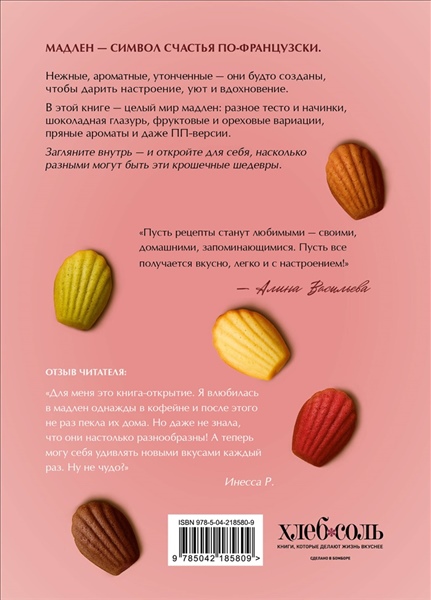 Мадлен — это маленькое французское чудо, которое наполняет дом ароматом ванили и спокойного утра. В своей книге Алина Васильева, кулинарный инфлюенсер (alvasileva) и домашний кондитер, показывает, что приготовить это классическое печенье гораздо проще, чем кажется. А кроме этого, познакомьтесь с множеством альтернативных и авторских вариантов десерта: с различными глазурями, начинками и дополнительными ингредиентами, которые меняют вкус и впечатление до неузнаваемости.