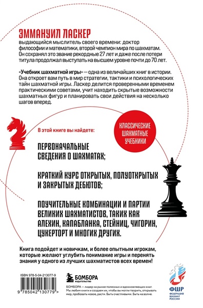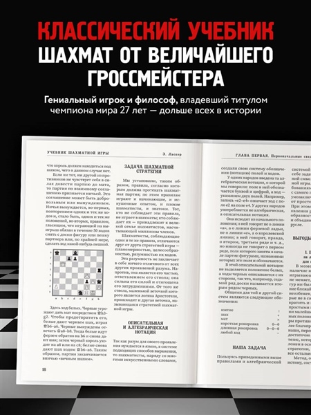 Эмануил Ласкер — выдающийся мыслитель своего времени: доктор философии и математики, второй чемпион мира по шахматам. Он сохранял это звание рекордные 27 лет и даже после потери титула продолжал выступать на высшем уровне почти до 70 лет. «Учебник шахматной игры» — одна из величайших книг в истории. Она откроет вам путь в мир стратегии, тактики и психологических тайн шахматной игры. Ласкер делится проверенными временем практическими советами, учит находить скрытые возможности шахматных фигур и планировать свои действия на несколько шагов вперед. В этой книге вы найдете: - первоначальные сведения о шахматах; - краткий курс открытых, полуоткрытых и закрытых дебютов; - поучительные комбинации и партии великих шахматистов, таких как Алехин, Капабланка, Стейниц, Чигорин, Цукерторт и многих других. Книга подойдет и новичкам, и более опытным игрокам, которые желают углубить понимание игры и перенять знания у одного из лучших шахматистов всех времен!