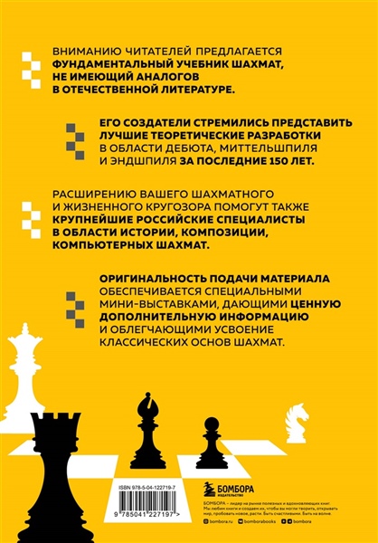 Оригинальность подачи материала обеспечивается специальными мини-вставками, дающими ценную дополнительную информацию и облегчающими усвоение классических основ шахмат.