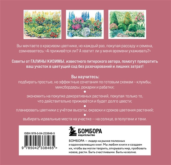 Каждый год вы мечтаете о пышном цветнике, а в итоге получаете разрозненные посадки и разочарование? Эта книга Галины Кизимы, опытного садовода и любимого автора дачников, создана для тех, кто хочет наконец-то увидеть на своем участке аккуратные, продуманные и долгоцветущие композиции — без лишних затрат денег и нервов. Вы узнаете, как: - по готовым схемам создавать клумбы, миксбордеры, рокарии и рабатки под разные размеры участков и вкусы; - подбирать неприхотливые цветы и кустарники, которые не требуют сложного ухода; - грамотно сочетать растения по высоте, цвету и срокам цветения, чтобы сад был красив с ранней весны до поздней осени; - выбирать удачные места для цветников на солнце, в полутени и тени, чтобы не мучиться с пересадками. Шаг за шагом превратите свой участок в ухоженный цветущий сад, которым можно по-настоящему гордиться!