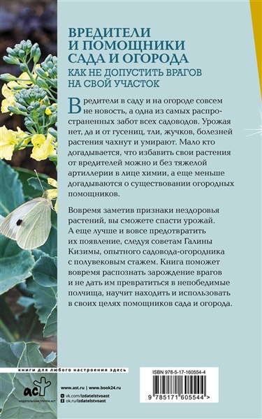 Вредители в саду и на огороде совсем не новость, а одна из самых распространенных забот всех садоводов. Урожая нет, да и от гусениц, тли, жучков, болезней растения чахнут и умирают. Мало кто догадывается, что избавить свои растения от вредителей можно и без тяжелой артиллерии в лице химии, а еще меньше догадываются о существовании огородных помощников. Вовремя заметив признаки нездоровья растений, вы сможете спасти урожай. А еще лучше и вовсе предотвратить их появление, следуя советам Галины Кизимы, опытного садовода-огородника с полувековым стажем. Книга поможет вовремя распознать зарождение врагов и не дать им превратиться в непобедимые полчища, научит находить и использовать в своих целях помощников сада и огорода.