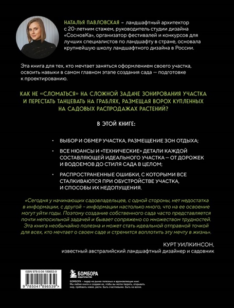 Сегодня Наталья Павловская — ландшафтный архитектор с 20-летним опытом и владелица крупнейшей школы ландшафтных дизайнеров в России. В этой книге она делится секретами планировки сада с теми, кто мечтает о красивом участке, но не знает, с чего начать.