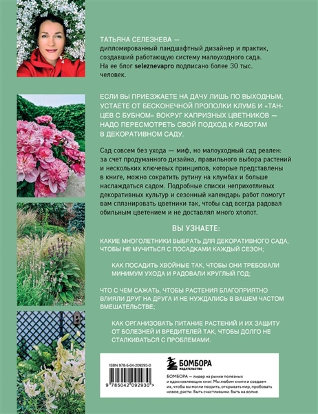 Автор — Татьяна Селезнёва, дипломированный ландшафтный дизайнер и практик, создавший работающую систему малоуходного сада. В соцсетях более 30 тыс. подписчиков.