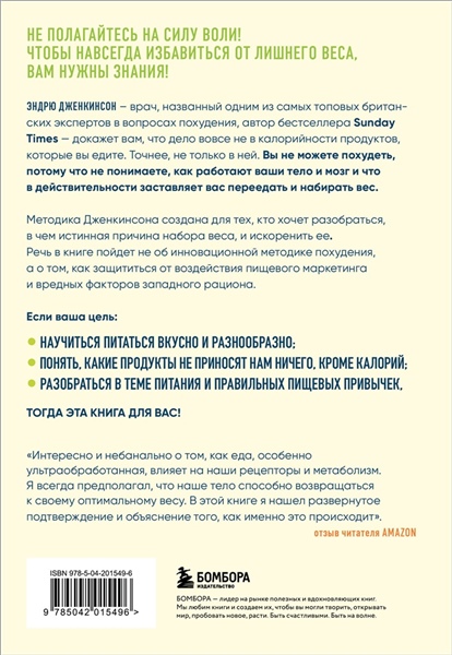 «С понедельника начинаю новую жизнь! Больше никаких конфет и круассанов! Забываю о бургерах и чипсах!» Наверное, многие давали себе подобные обещания, но как же сложно отказаться от любимых «вкусняшек»… Дело в том, что наш мозг стремится к получению «быстрого дофамина», мгновенному удовольствию от пищи — особенно жирной, соленой и сладкой. Именно в этом и кроется секрет успешного похудения, считает доктор Эндрю Джекинсон, — необходимо не просто считать калории, а понять, как обмануть свой мозг и побороть тягу к вредным продуктам. В этой книге он подробно описывает свою инновационную методику и дает множество советов, которые помогут начать относиться к еде по-новому. В «Как есть и продолжать худеть» вы найдете:· последние открытия в области изучения метаболизма;· простые привычки, которые легко ввести в свою жизнь, чтобы стать легче и здоровее;· вкуснейшие и полезные рецепты кухонь народов мира.Путь к здоровому и стройному телу никогда еще не был таким увлекательным!
