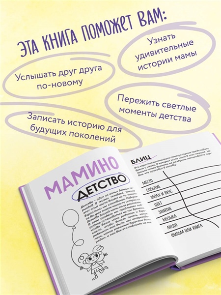«Наша с тобой история, мама» — не просто книга, а пространство для самых тёплых воспоминаний и уникальная возможность для вас стать с мамой еще ближе. Это приглашение в личное путешествие: вспомнить, как всё было, услышать друг друга по-новому, узнать маму еще лучше и написать вашу семейную историю — вместе. Авторы книги — специалисты проекта «Достаточно хорошие родители» — сервиса с консультациями, курсами и материалами о детстве, родительстве и взрослении. Книга написана основательницей проекта Надей Шибут совместно с психологами Евлалией Просветовой и Наташей Гарист. Кому подойдёт? ✅ Для дочерей (и сыновей), которые хотят лучше понять своих мам. ✅ Для мам, готовых делиться историями и сближаться с детьми. ✅ Для всех, кто ценит семейные традиции и хочет сохранить их для будущих поколений. Что вас ждет внутри? - Глубокие, трогательные вопросы — чтобы узнать маму с новой стороны: какой она была в детстве, о чем мечтала в юности, что чувствовала, когда вы появились на свет. - Совместные творческие задания — готовьте вместе пироги из детства, слушайте старые песни, воcсоздавайте семейные фото. - Блиц-вопросы и артефакты — фиксируйте яркие воспоминания с помощью ассоциаций, фотографий и записей. - Рефлексия и благодарность — пишите письма в прошлое, отмечайте, как изменились ваши отношения. Как это работает? - Выбираете тему — детство мамы, ее юность или ваши совместные годы. - Отвечаете на вопросы — простые, трогательные, неожиданные. - Выполняете задания — вместе готовите, рисуете, вспоминаете. - Сохраняете моменты — вклеиваете фото, билеты, записки. Это больше, чем просто книга. Это ваша семейная реликвия. Подарите себе и маме часы доверительных разговоров, смеха и теплых воспоминаний. Пусть ваша история будет наполнена любовью! Сохраните самые дорогие воспоминания! Для себя и для следующих поколений!