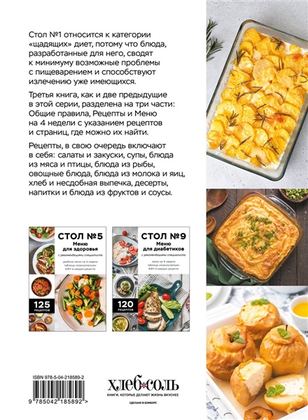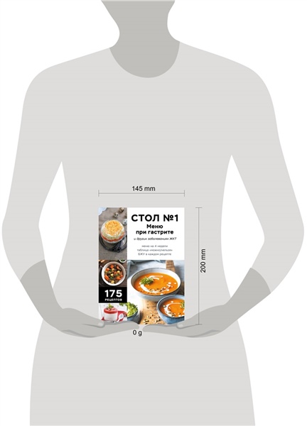 Если у вас имеются несерьезные проблемы с ЖКТ, вы можете обратиться к этой книге как источнику большого количества правильных рецептов. Основной раздел книги — это рецепты, составленные в рамках рекомендаций «Стола № 1» и поделенные на группы: салаты и закуски; супы, каши и макаронные изделия; блюда из мяса, рыбы, овощей; хлеб и несдобная выпечка; десерты и т.д. Вы можете как приготовить эти блюда по отдельности, так и составить из них меню на день, неделю или месяц: в конце книги предлагается пример меню с использованием большей части представленных здесь рецептов. В каждом из них указано количество порций, калорий и БЖУ.