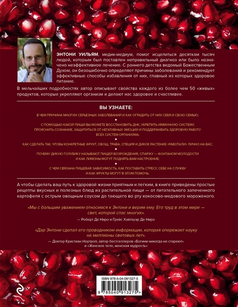 В своей книге всемирно известный целитель, медик-медиум, Энтони Уильям рассказывает о целебной силе, скрытой во фруктах, овощах, травах, специях и диких растениях. Вы узнаете, что дары природы не только способны оказать нам эмоциональную поддержку и дать ценный духовный урок, но и помочь ослабленному болезнью организму справиться с ней.