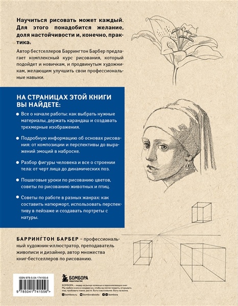 Комплексный курс по рисованию от профессионального художника и автора бестселлеров Баррингтона Барбера. "Базовое руководство художника" - настоящий проводник в мир рисования. С его помощью любой желающий сможет открыть в себе талант к изобразительному искусству. В книге собраны все знания, необходимые для того, чтобы начать свой путь к созданию собственных шедевров. На страницах руководства доступным языком освещаются все основы создания рисунков - от первых шагов до варьирования различными техниками. Вместе с этой книгой вы пройдете полный курс рисования, начнете создавтаь собственные картины - эстетичные натюрморты, невероятные пейзажи и даже портреты с натуры.
