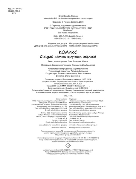 Ты обожаешь комиксы? Попробуй создать свою графическую историю и придумать героев! Тебе не обязательно уметь рисовать или иметь заранее готовый сценарий. Эта книга поможет нарисовать персонажей комиксов с нуля – ты придумаешь, как они выглядят, двигаются, говорят, что чувствуют и какими чертами характера и особенностями обладают. Ты сможешь разработать стильный образ для своего героя, узнаешь, как отразить на лице разные эмоции и передать развитие персонажа на протяжении всей истории. Советы профессионалов и подробные иллюстрации помогут тебе создать уникальный комикс и воплотить в жизнь невероятные идеи!Иллюстратор молодёжных комиксов, ведущий мастер-классов и создатель канала на YouTube, Грег Блондэн, а также его коллега, колористка Манон, раскрывают профессиональные секреты!