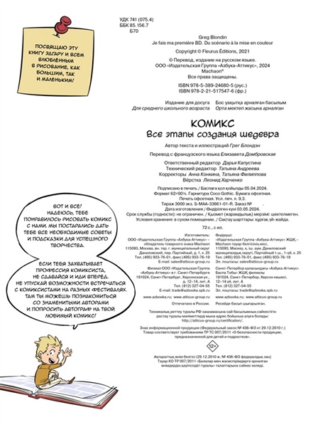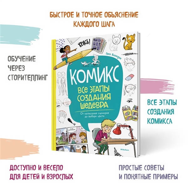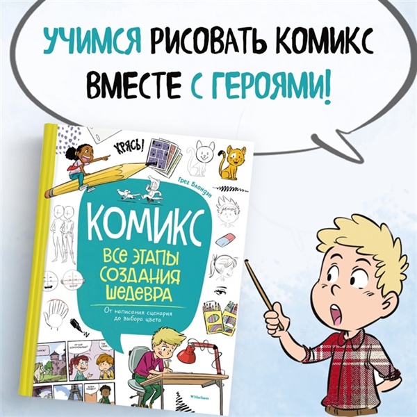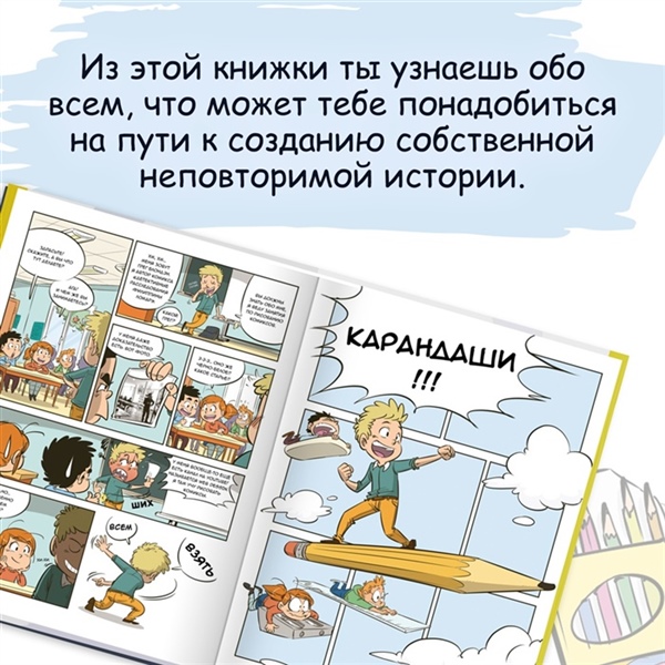 Ты обожаешь комиксы? Попробуй создать свою графическую историю! Тебе не обязательно уметь рисовать или иметь заранее готовый сценарий. Благодаря этой книге ты узнаешь, как шаг за шагом пройти путь профессионального комиксиста: от разработки сюжета и персонажей до оформления обложки и даже сотрудничества с издательством! Ты научишься записывать текст для комикса, рисовать пузыри с репликами, делать раскадровку, подбирать цветовые оттенки и передавать настроение героев. Советы профессионалов и подробные иллюстрации помогут тебе создать уникальный комикс и воплотить в жизнь невероятные идеи!