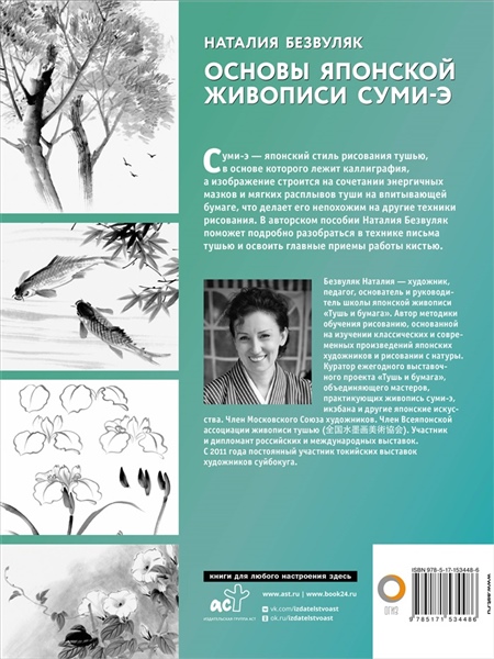 Суми-э — японский стиль рисования тушью. В основе техники лежит каллиграфия, изображение строится на сочетании энергичных мазков и мягких расплывов туши на впитывающей бумаге, что делает его непохожим на другие техники рисования. Художники суми-э не стремятся нарисовать объект реалистично, а лишь показывают суть, сосредотачиваясь на главном. Сегодня японская культура, живопись все больше привлекает внимание людей, традиционная практика суми-э продолжает развиваться и находит все больше последователей во всем мире. Это пособие поможет вам научиться владеть кистью, улучшить навыки рисования и усвоить основы японской живописи суми-э.