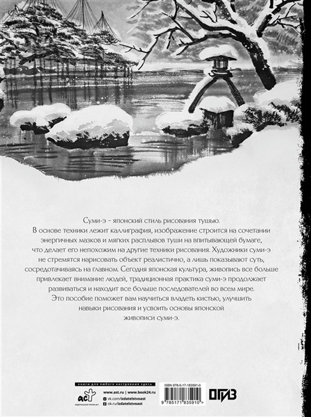Суми-э — японский стиль рисования тушью. В основе техники лежит каллиграфия, изображение строится на сочетании энергичных мазков и мягких расплывов туши на впитывающей бумаге, что делает его непохожим на другие техники рисования. Художники суми-э не стремятся нарисовать объект реалистично, а лишь показывают суть, сосредотачиваясь на главном. Сегодня японская культура, живопись все больше привлекает внимание людей, традиционная практика суми-э продолжает развиваться и находит все больше последователей во всем мире. Это пособие поможет вам научиться владеть кистью, улучшить навыки рисования и усвоить основы японской живописи суми-э.