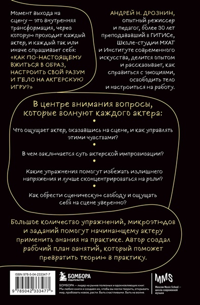 Большое количество прикладных советов, личного опыта, практических упражнений и микроэтюдов помогут не просто погрузиться в теорию, лежащую в основе актерского мастерства, но и на практике отточить новые знания.