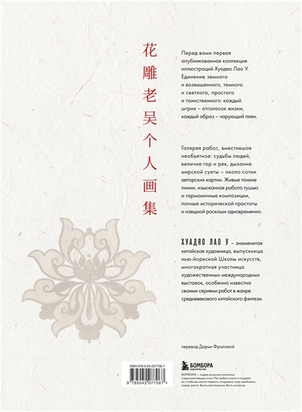 Хуадяо Лао У — известная китайская художница, выпускница Нью-Йоркской школы искусств, участница международных выставок, особенно знаменитая сериями средневекового китайского фэнтези.