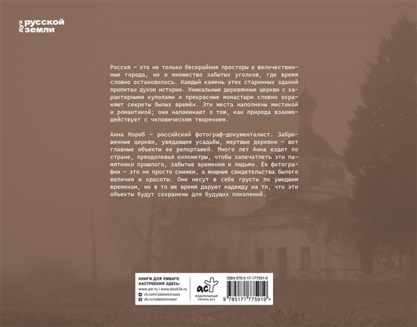 Анна Короб — российский фотограф-документалист. Заброшенные церкви, увядающие усадьбы, мертвые деревни — вот главные объекты ее репортажей. Много лет Анна ездит по стране, преодолевая километры, чтобы запечатлеть эти памятники прошлого, забытые временем и людьми. Ее фотографии — это не просто снимки, а мощные свидетельства былого величия и красоты. Они несут в себе грусть по ушедшим временам, но в то же время даруют надежду на то, что эти объекты будут сохранены для будущих поколений.