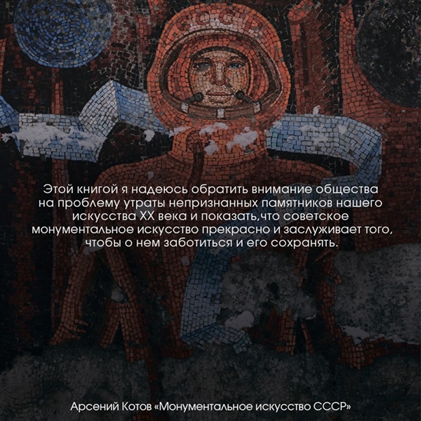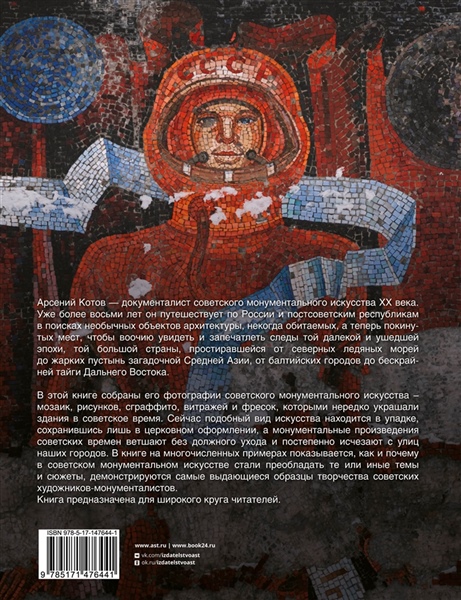 В книге "Монументальное искусство СССР" собраны фотографии советского монументального искусства - мозаик, рисунков, сграффито, витражей и фресок, которыми нередко украшали здания в советское время. Сейчас подобный вид искусства находится в упадке, сохранившись лишь в церковном оформлении, а монументальные произведения советских времен ветшают без должного ухода и постепенно исчезают с улиц наших городов. В книге на многочисленных примерах показывается, как и почему в советском монументальном искусстве стали преобладать те или иные темы и сюжеты, демонстрируются самые выдающиеся образцы творчества советских художников-монументалистов.Арсений Котов — документалист советского монументального искусства XX века. Уже более восьми лет он путешествует по России и постсоветским республикам в поисках необычных объектов архитектуры, некогда обитаемых, а теперь покину¬тых мест, чтобы воочию увидеть и запечатлеть следы той далекой и ушедшей эпохи, той большой страны, простиравшейся от северных ледяных морей до жарких пустынь загадочной Средней Азии, от балтийских городов до бескрай¬ней тайги Дальнего Востока.