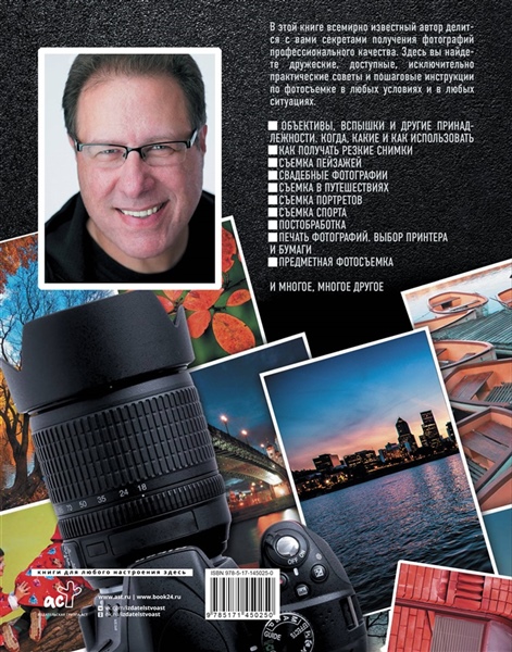 "Фотография. Просто и практично" — самая практичная в мире книга по фотографии, мировой хит, отмеченный наградами и переведенный на десятки языков. Книга реально показывает, как получить фотографии профессионального качества, используя те же приемы, что и лучшие современные фотографы. Автор всегда с вами на съемках — отвечает на ваши вопросы, дает советы и делится секретами точно так же, как со своим другом — без всяких технических подробностей и технического жаргона — какую кнопку нажимать, какую и когда выбирать настройку. Дает также дружеские советы по приобретению фототехники — на что имеет смысл тратить деньги и на чем можно сэкономить. Книга предназначена фотолюбителям, которые хотят повысить качество своих снимков.