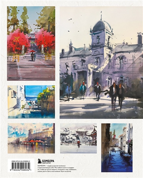 Книга сочетает в себе практическое обучение и подборку референсов для вдохновения: от разбора инструментов до воссоздания своих первых городских изображений на бумаге: базовые приемы, пошаговые уроки, разнообразие примеров (городские улочки, парки, железная дорога и т.д.), советы по выбору инструментов, авторские секреты по работе с акварелью и много другое!