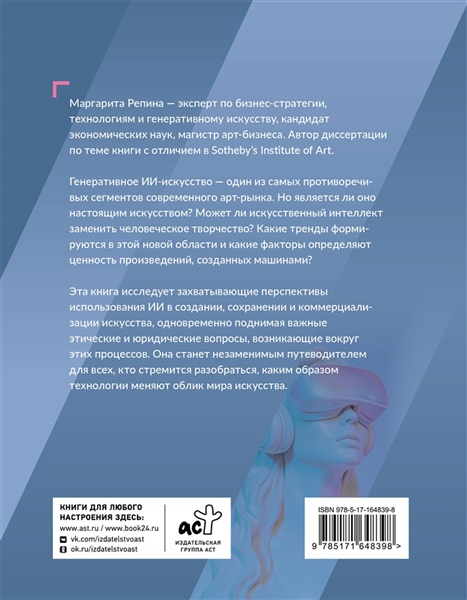 Эта книга исследует захватывающие перспективы использования ИИ в создании, сохранении и коммерциализации искусства, одновременно поднимая важные этические и юридические вопросы, возникающие вокруг этих процессов. Она станет незаменимым путеводителем для всех, кто стремится разобраться, каким образом технологии меняют облик мира искусства.