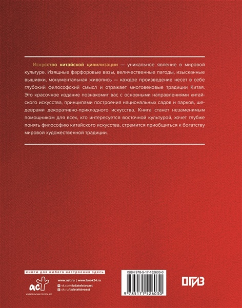 Искусство китайской цивилизации — уникальное явление в мировой культуре. Изящные фарфоровые вазы, величественные пагоды, изысканные вышивки, монументальная живопись — каждое произведение несет в себе глубокий философский смысл и отражает многовековые традиции Китая. Это красочное издание познакомит вас с основными направлениями китайского искусства, принципами построения национальных садов и парков, шедеврами декоративноприкладного