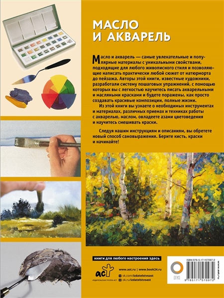 Масло и акварель — самые увлекательные и популярные материалы с уникальными свойствами, подходящие для любого живописного стиля и позволяющие написать практически любой сюжет — от натюрморта до пейзажа. Авторы этой книги, известные художники, разработали систему пошаговых упражнений, с помощью которых вы с легкостью научитесь писать акварельными и масляными красками и будете поражены, как просто создавать красивые композиции, полные жизни.