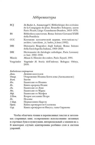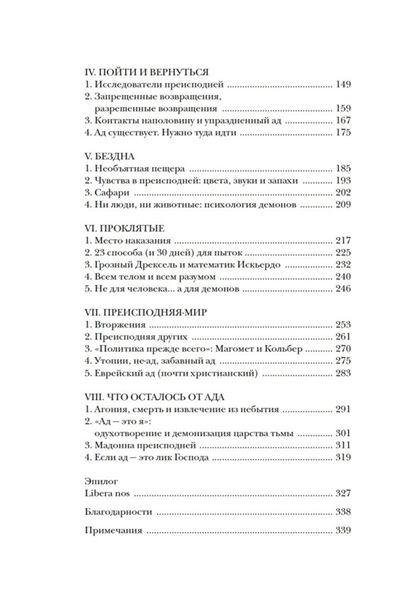 «Факт, который заставит современного читателя улыбнуться (даже верующего!): в течение XX века ад окончательно дематериализовался. Хотя пережитков, изменений и очагов сопротивления хватает, никто больше не ищет царство зла в недрах земли, где с бо льшим комфортом расположилось металлическое ядро, производящее магнитное поле». (Маттео Аль Калак)