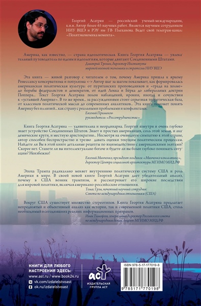 Работа Георгия Асатряна продолжает серию книг "Популярная политика", в которых освещаются актуальные геополитические вопросы в России и мире. Автор исследует политику действующего президента США Дональда Трампа с помощью глубокого исторического анализа американского консерватизма. В данном издании приведено полноценное описание этой темы начиная от пилигримов-пуритан и заканчивая современными элитами. Из этой книги читатель сможет узнать, каким образом сформировалась идеология трампизма, ассоциирующаяся с реднеками и противостоящая либерализму. Таким образом, Георгий Асатрян, основываясь на своем многолетнем академическом опыте, в том числе работе в США, разрушает стереотипы об этой стране и непредвзято описывает состояние росийско-американских отношений.