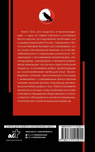 Книга "Зло, его сущность и происхождение" — одно из самых глубоких и системных богословских исследований проблемы зла в дореволюционной России. Священник и богослов Тимофей Буткевич рассматривает зло не только как моральное явление, но и как метафизическую и социальную реальность. Полемизируя с пессимизмом Шопенгауэра, утилитаризмом, пантеизмом и материализмом, автор утверждает: зло не есть самостоятельная сущность, а искажение добра, происходящее из злоупотребления свободой воли. Книга сочетает святоотеческое наследие с вниманием к современным философским учениям, включая критику популярных критериев различения добра и зла. Работа Буткевича актуальна и сегодня, когда проблема зла снова становится предметом общественного и богословского обсуждения в контексте моральных, политических и экзистенциальных кризисов.