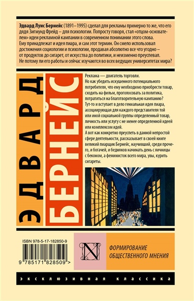 Реклама — двигатель торговли. Но как убедить искушенного потенциального потребителя, что ему необходимо приобрести товар, сходить на фильм, проголосовать за политика, потратиться на благотворительную кампанию? Тут-то и вступает в дело гениальная идея пиара, ассоциирующая для каждого представителя той или иной социальной группы определенный товар, личность или услугу с не менее определенной идеей или комплексом идей. А вот как конкретно преуспеть в данной непростой сфере деятельности, рассказывает в своей книге великий пиарщик Бернейс, научивший, среди прочего, и богачей, и бедняков начинать день с яичницы с беконом, а феминисток всего мира, увы, курить сигареты.