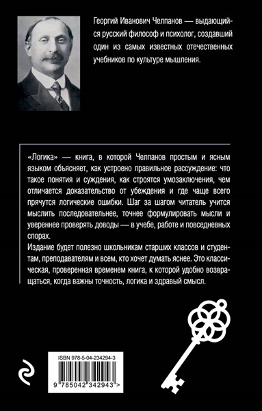 «Логика» Георгия Челпанова — классический учебник, который учит мыслить ясно, доказывать убедительно и отличать истину от правдоподобной ошибки. Это простое и наглядное руководство по законам рассуждения, написанное доступным языком и насыщенное примерами, поэтому оно читается не как сухая теория, а как практическая школа мышления.