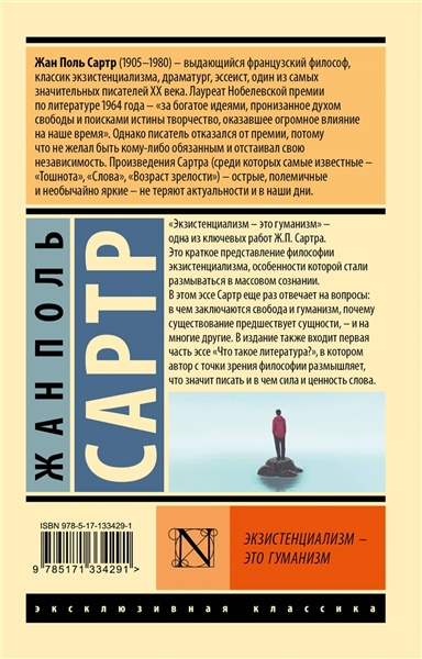 "Экзистенциализм – это гуманизм" – одна из ключевых работ Ж.П. Сартра. Это краткое представление философии экзистенциализма, особенности которой стали размываться в массовом сознании. В этом эссе Сартр еще раз отвечает на вопросы: в чем заключаются свобода и гуманизм, почему существование предшествует сущности, - и на многие другие. В издание также входить первая часть эссе "Что такое литература?", в котором автор с точки зрения философии размышляет, что значит писать и в чем сила и ценность слова.