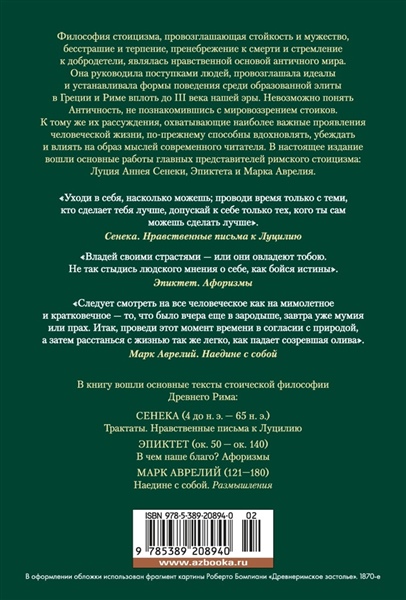 В настоящее издание вошли основные работы главных представителей римского стоицизма: Луция Аннея Сенеки, Эпиктета и Марка Аврелия.