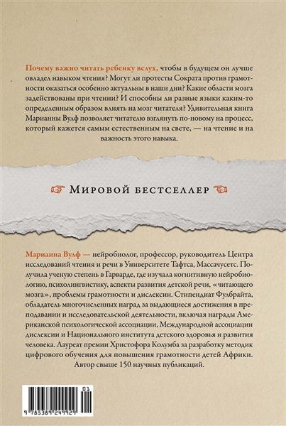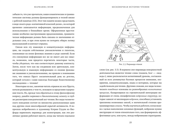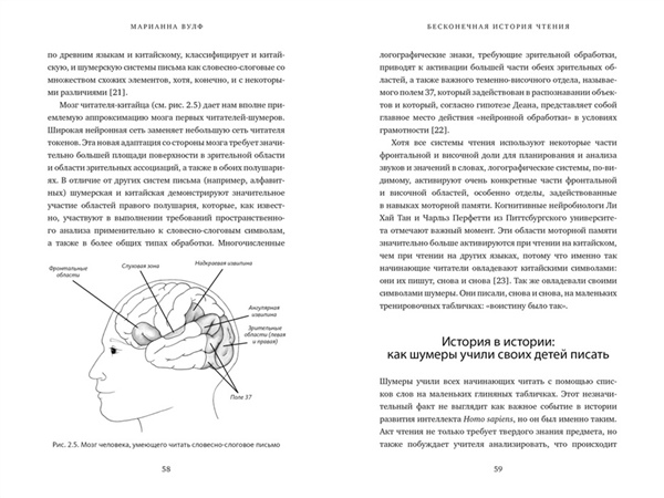 Человек не был рожден для чтения, однако этот навык изменил траекторию нашего развития. Способность человека писать и читать позволяет фиксировать историю, развивает воображение, воспитывает эмпатию, расширяет наши представления об окружающем мире и даже придает ему новые, яркие цвета. Почему и как это происходит? Книга выдающегося нейробиолога Марианны Вулф посвящена когнитивным механизмам, которые лежат в основе процессов чтения. От шумерской клинописи до современных цифровых текстов — Вулф погружает нас в историю развития чтения. Подробно и доступно автор объясняет, что происходит в мозге каждого человека, когда он читает или еще только овладевает навыком чтения, как нас меняет то, что мы читаем, и когда мозг не в состоянии научиться читать. Вместе с этой книгой читатель отправится в увлекательное путешествие по истории и нейробиологии чтения — одного из самых замечательных «изобретений» человечества.