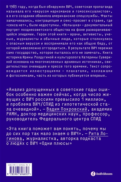 В 1983 году, когда был обнаружен ВИЧ, советская пропаганда называла его «вирусом наркоманов и гомосексуалистов», а в его создании обвиняла американские спецслужбы. Факты замалчивались, контрацепция и секс-просвет в стране, где «секса нет», были недоступны. «Вспышка» — документальный портрет позднесоветского общества на фоне разворачивающейся эпидемии. Герои этой книги — врачи, активисты, ученые, журналисты и обычные люди, которые столкнулись с опасным вирусом и воспринимали его как общую беду, от которой невозможно отгородиться. В результате ВИЧ пережил само государство, которое пыталось его не замечать. Книга историка Ирины Ролдугиной и культуролога Катерины Сувериной основана на многочисленных архивных источниках, свидетельствах очевидцев и прессе того времени. Текст сопровождается иллюстрациями — плакатами, коллажами и фотоснимками, часть из которых публикуется впервые.