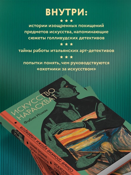 «Джоконда» Леонардо да Винчи, «Крик» Эдварда Мунка, «Немая» Рафаэля — что общего у этих картин, кроме того, что все они — мировые шедевры? Их объединяет то, что все они однажды побывали в руках охотников за произведениями искусства. Кража предмета искусства — тоже своего рода искусство. Читателя ждут тру-крайм-истории из жизни профессиональных похитителей культурных ценностей и отчаянных авантюристов, которые обводят вокруг пальца музейных охранников и системы сигнализации, подменяют оригиналы копиями и т. п.