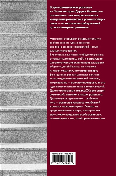 В хронологическом рассказе из 11 глав историк Дэррин Макмахон показывает, как видоизменялась концепция равенства в разных обществах — от охотников-собирателей до тоталитарных режимов.