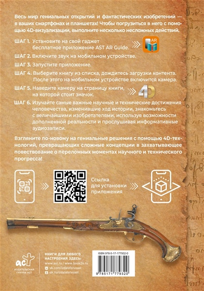 Вы узнаете, как создавались паровые машины и квантовые компьютеры, как развивались медицина и связь, какие материалы и технологии коренным образом изменили быт, военное дело, сельское хозяйство и даже сферу развлечений. Краткие, но весьма емкие описания раскрывают историю каждого изобретения, его значение и влияние на общество. А с использованием современных технологий дополненной реальности вы сможете получить много дополнительной информации путем 4D-визуализации и прослушивания увлекательных аудиосообщений.