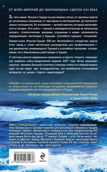 От войн империй до миллиардных сделок XXI века. За пять веков Россия и Турция не раз меняли статус: от заклятых врагов до ситуативных союзников, от партнеров по мегапроектам до геополитических конкурентов. Их отношения — вечный маятник, который раскачивается и сегодня. Эта книга — смелый и непредвзятый взгляд на закулисные интриги, стратегические дилеммы, упущенные и новые возможности, определяющие настоящее и будущее российско-турецких отношений. Первая книга «Россия — Турция: 500 лет беспокойного соседства» вышла 8 лет назад и стала настольным руководством для профессионалов — как дипломатов, так и бизнесменов, занимающихся Турцией и российско-турецкими отношениями. С той поры многое кардинально изменилось, и вместо 2-го переиздания родилась книга — продолжение издания 2017 года. * Почему Турция отказалась от уникальных предложений России, которые могли бы вывести ее экономику в «высшую лигу»? * Как амбиции Анкары в «тюркском мире» и на Украине превращаются в «красную зону» для Москвы? * Какую игру ведет Турция, балансируя между членством в НАТО и заявкой на лидерство на Глобальном Юге? * С каким багажом Турция подходит к важнейшему внутриполитическому перекрестку — выборам 2028 года, когда страну ждет либо транзит власти, либо резкое изменение траектории? Автор вскрывает скрытые пружины большой политики в поисках ответа на главный вопрос: ждет ли нас, как Россию, новая эра сотрудничества или неизбежное столкновение интересов на руинах старого миропорядка? Иван Стародубцев — известный политолог, турколог, предприниматель, бизнес-коуч и эксперт-практик для российского бизнеса в Турции, писатель, публицист, доцент Финансового Университета при Правительстве РФ, ведущий авторских передач «Турецкий Хаб» и «Внешний Контур» на радиостанции Вести ФМ, автор ТГ-канала «Турция — это». Автор живет в Турции и непосредственно вовлечен в российско-турецкие проекты вот уже более 20 лет, поэтому знает страну и ее закулисье, как никто другой. «Убежден, что очень высокой оценки заслуживает стремление И.И. Стародубцева не только описатьто, что происходит на турецком направлении, но и предельно доходчиво разъяснить, как это воспринимается в Турции». — А.В. Ерхов, Чрезвычайный и Полномочный Посол России в Турции (2017—2025)