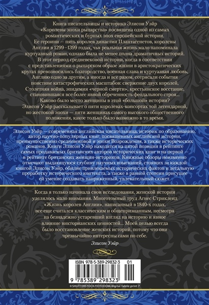 Книга писательницы и историка Элисон Уэйр «Королевы эпохи рыцарства» посвящена одной из самых романтических и бурных эпох европейской истории. Ее героини — пять королев династии Плантагенетов, королевы Англии в 1299–1399 годах, чья реальная жизнь мало напоминала куртуазный роман, однако была не менее полна драматичных историй.