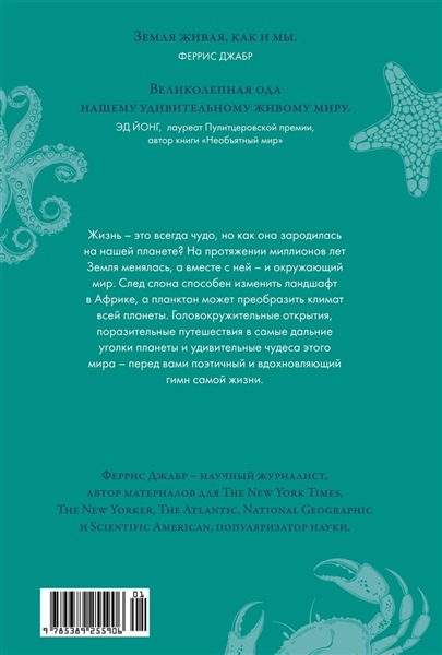 Со времен Дарвина жизнь на нашей планете рассматривалась с точки зрения эволюции. Но не одна лишь Земля влияет на живой мир — ее обитатели так же преображают планету. Морские водоросли изменяют химический состав океана, а много веков назад именно океанические бактерии придали небу голубой цвет. Однако никто не влияет на облик планеты сильнее человека. В этой книге Феррис Джабр убедительно показывает, что люди, окружающий мир и Земля неразрывно связаны между собой. Мы побываем на острове Врангеля и на дне океана, отправимся в прошлое в эпоху плейстоцена и познакомимся с бескрайними просторами тропических лесов, чтобы вы больше не сомневались: Земля — это не планета, на которой зародилась жизнь, а планета, которая ожила. Какое будущее ждет наш общий дом?