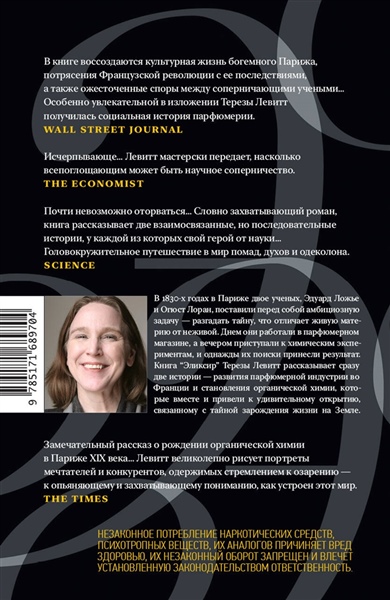 В 1830‑х годах в Париже двое ученых Эдуард Ложье и Огюст Лоран поставили перед собой амбициозную задачу — разгадать тайну: что отличает живую материю от неживой. Принятая на тот момент научная традиция считала, что это невозможно, поэтому молодые люди были сочтены безумными маргиналами и изгнаны из авторитетного научного сообщества. Днем они работали в парфюмерном магазине, занимаясь изготовлением масел и ингредиентов для духов, а вечером приступали к собственным химическим экспериментам. И однажды их поиски принесли результат, объяснения которому нет до сих пор. В своей книге “Эликсир” историк Тереза Левитт рассказывает две неразрывно переплетающиеся истории — развития парфюмерной индустрии во Франции и становления органической химии. Вместе они привели химиков к одному из самых удивительных научных открытий, связанных с тайной зарождения жизни на Земле.