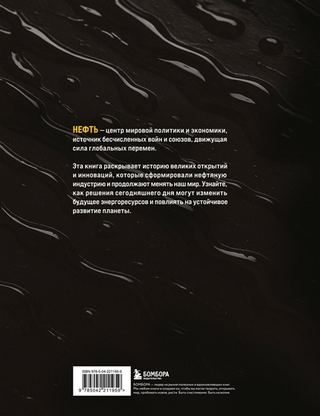 Нефть — не просто смесь углеводородов, это центр мировой политики и экономики, источник бесчисленных войн и союзов, кризисов и подъемов, движущая сила глобальных перемен. Эта книга раскрывает историю великих открытий и инноваций, которые сформировали нефтяную индустрию и продолжают менять наш мир. Узнайте, как решения сегодняшнего дня могут изменить будущее энергоресурсов и повлиять на устойчивое развитие планеты. - История и геополитика нефти: от бакинских промыслов и Спиндлтопа до распада Standard Oil, «Семи сестёр», рождения ОПЕК и кризиса 1973 года. - Технологические прорывы отрасли: увеличение нефтеотдачи, сланцевая добыча, битумные пески, шельф, цифровые месторождения, современные низкосернистые и «умные» топлива. - Российская перспектива: зависимость экономики от углеводородов и необходимое внедрение новых стандартов для сохранения конкурентоспособности. - Энергопереход и экологизация: парадоксы «зелёной» повестки и сценарии пика спроса с постепенным сдвигом нефти к более специализированному использованию.