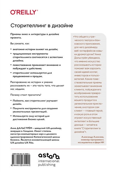 Это практическое руководство по использованию сторителлинга в дизайне цифровых продуктов. Дизайнер и специалист по пользовательскому опыту Анна Дальстрём показывает, как приемы кино и литературы помогают создавать проекты, которые цепляют внимание, удерживают интерес и побуждают к действию.